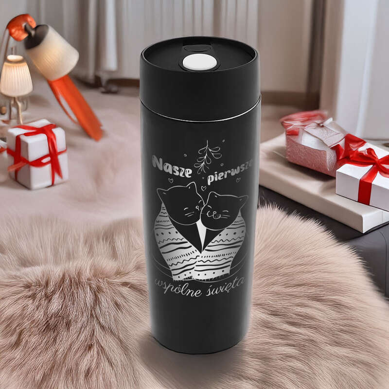Świąteczny kubek termiczny czarny 350 ml z grawerem laserowym