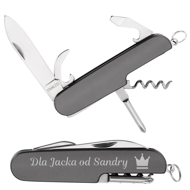 Scyzoryk nierdzewny - 5 funkcji, z grawerem, szary