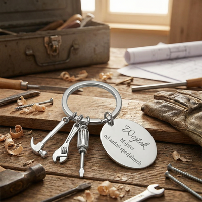 Personalizowany brelok „Majster” z narzędziami – z grawerem na zawieszce