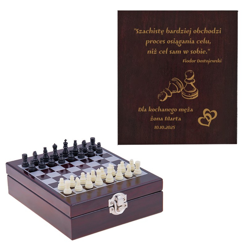 Zestaw do wina 4 el. w drewnianym pudełku szachy DEDYKACJA