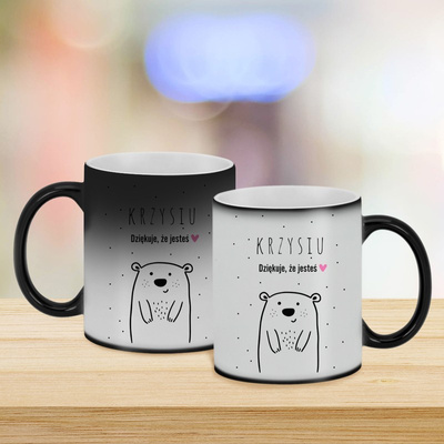 Kubek z imieniem / Magiczny kubek / Dziękuję że jesteś / 330 ml / Prezent dla bliskiej osoby / Błyszczący