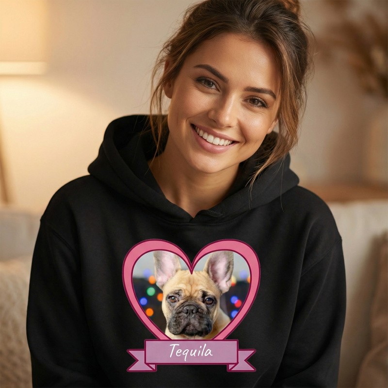 Czarna bluza z kapturem z kotem – personalizowana z imieniem pupila