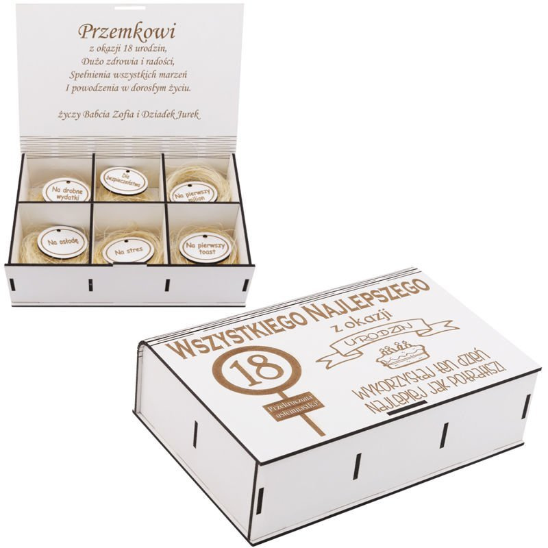 Urodzinowe pudełko niespodzianek Prezent na 18 urodziny z Grawerem