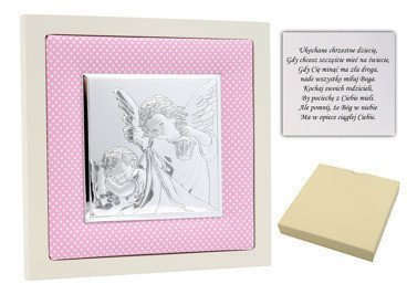 Posrebrzany obrazek Anioł Stróż na Chrzest z grawerem laserowym
