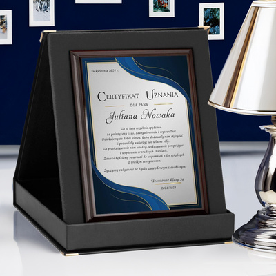 Dyplom na urodziny / Drewniany panel, srebrna tabliczka, etui, dedykacja / Prezent na urodziny