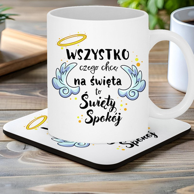 Świąteczny kubek ceramiczny z podkładką – personalizacja nadruku