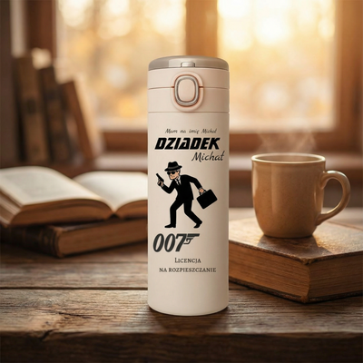 Personalizowany kubek termiczny „Dziadek 007 – licencja na rozpieszczanie”