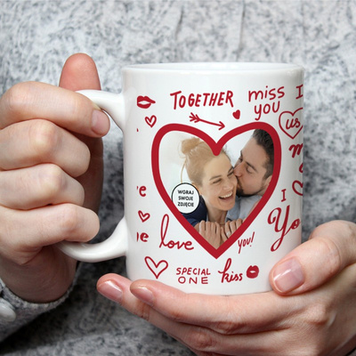 Kubek na kawę ze zdjęciem / Serce / 330 ml / Prezent na walentynki dla zakochanych