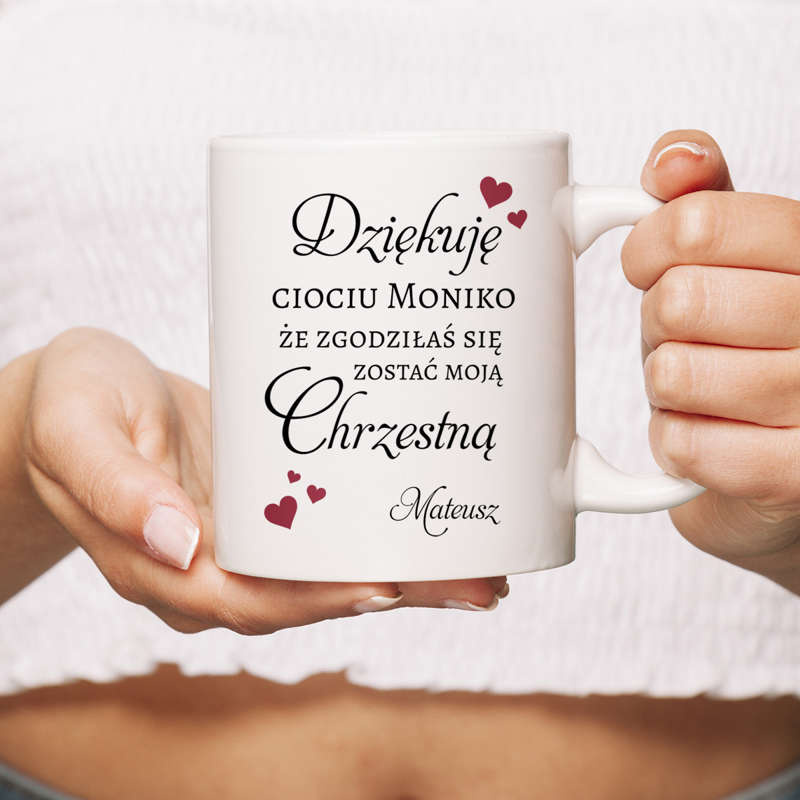 Kubek z nadrukiem dla Chrzestnej / Kubek z pokrywką