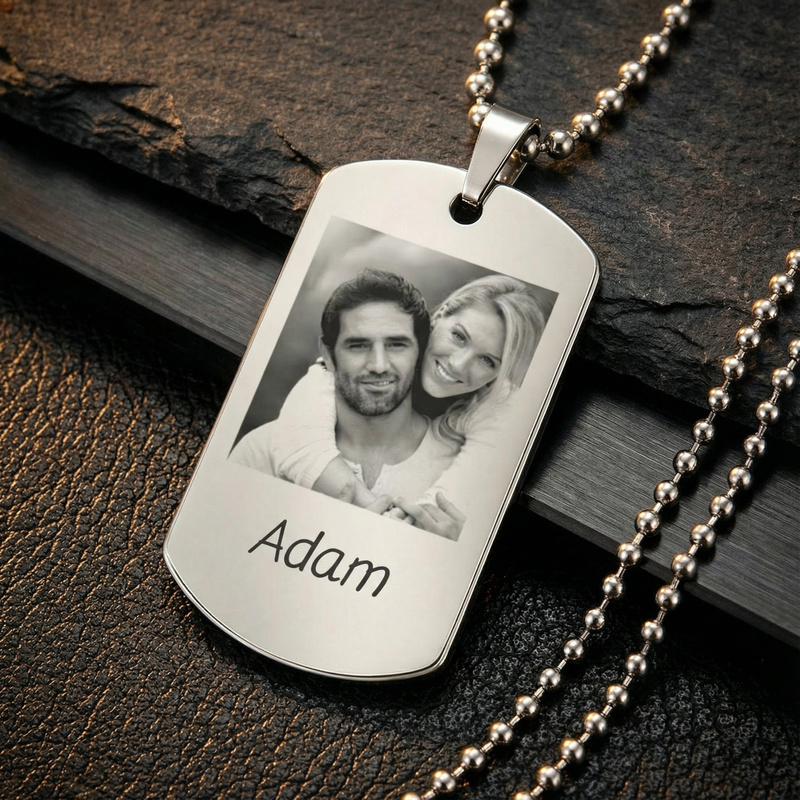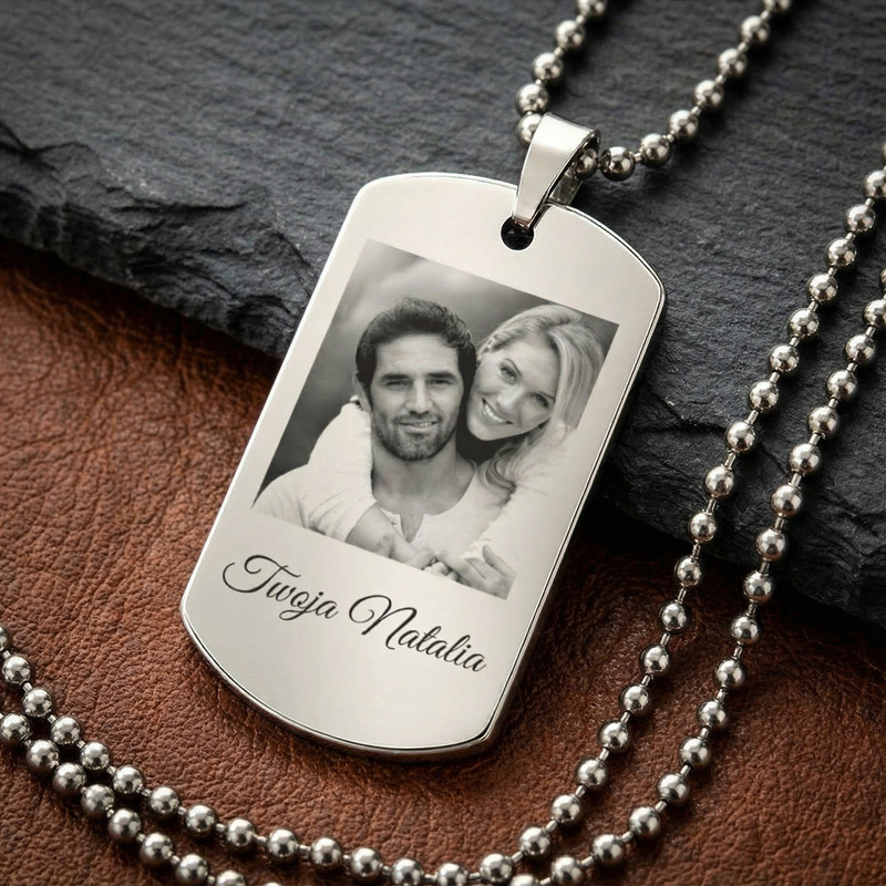 Nieśmiertelnik stal szlachetna z grawerem – personalizowany prezent premium, grawer dwustronny gratis