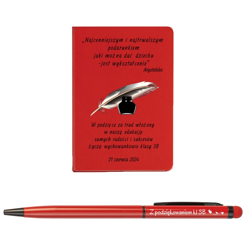 Zestaw notes i długopis / Czerwony / Prezent dla nauczyciela / Personalizowana okładka / Nadruk i grawer