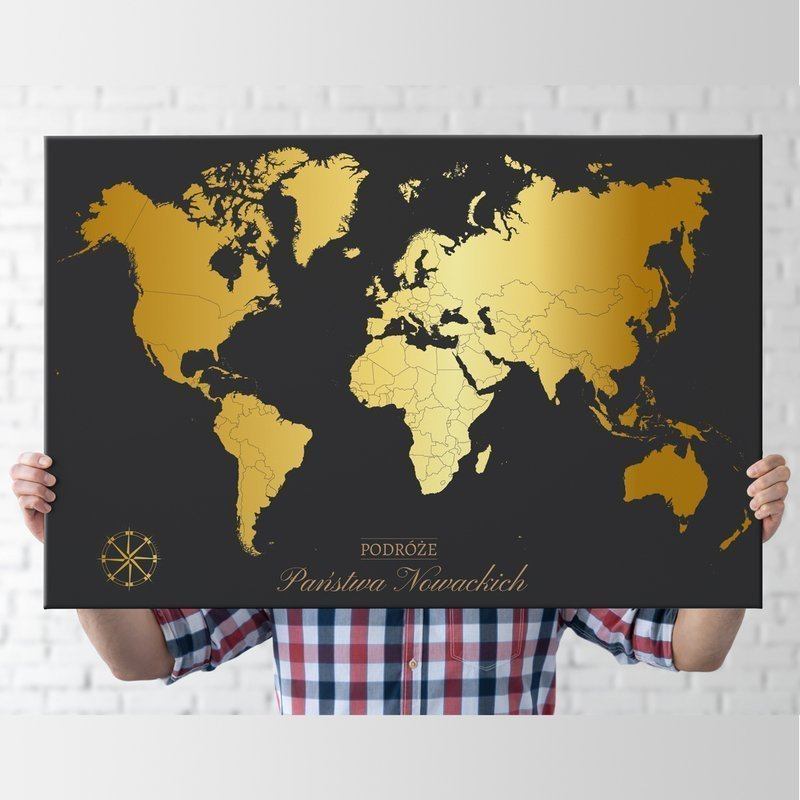 Złota mapa świata - obraz do salonu 30x40 podróże małe i duże