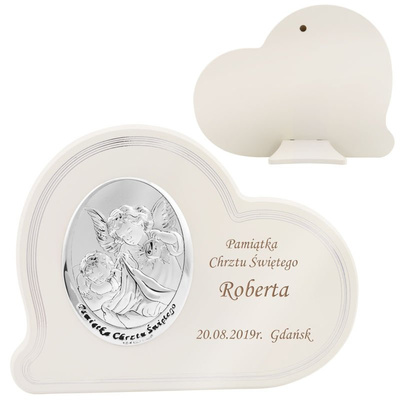 Pamiątka chrztu – srebrny obrazek Anioł Stróż z dedykacją