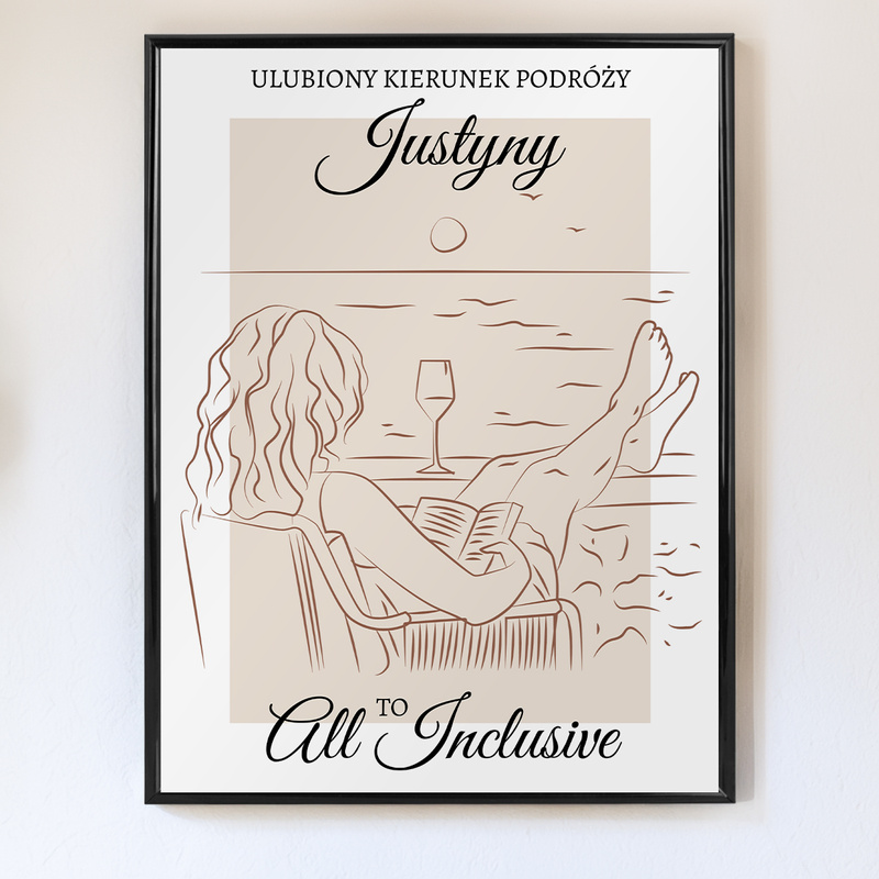 Personalizowany Plakat „Ulubiony Kierunek Podróży” – All Inclusive | Format 40x30 cm | W Ramie