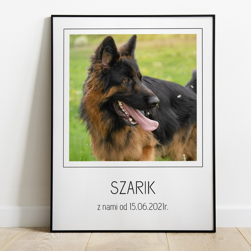 Prezent dla psiarza plakat ze zdjęciem pupila/ Z nami już jest od.... / 30x40 cm / szkło