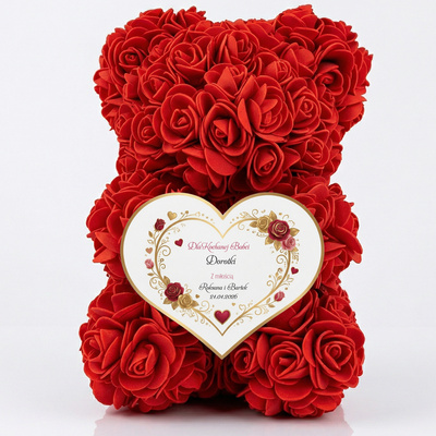 Personalizowany miś z czerwonych róż dla Babci ze zdjęciem wnuków