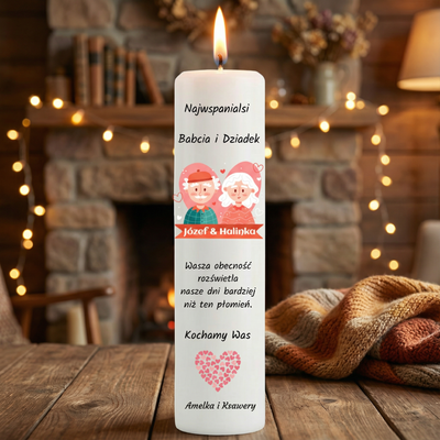 Personalizowana świeca dla Babci i Dziadka – „Wasza obecność rozświetla nasze dni”