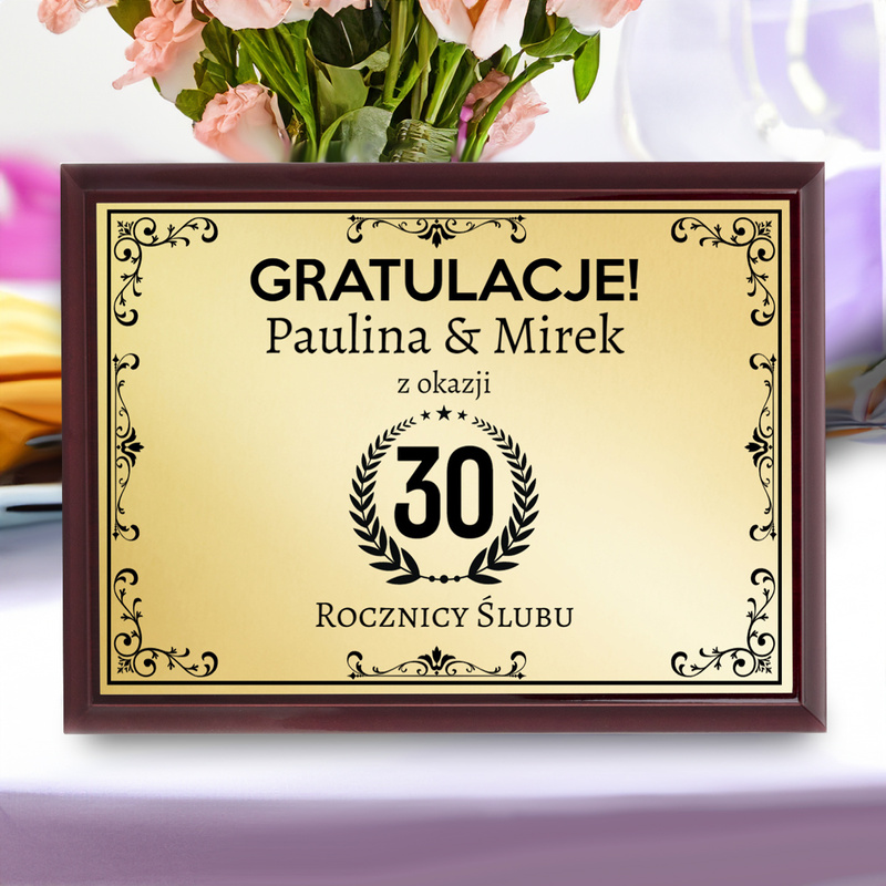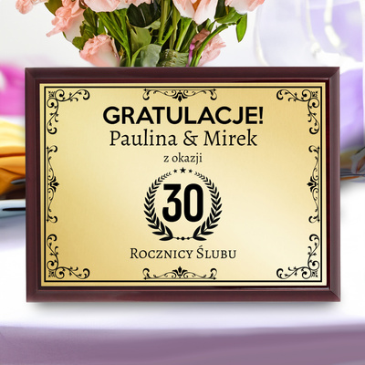 Prezent na rocznicę ślubu / Drewniany panel, złota tabliczka, dedykacja