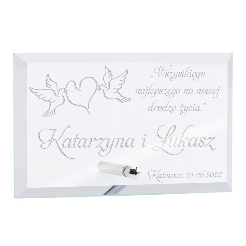 Szklana statuetka z kolorowym nadrukiem, Twój tekst i grafika