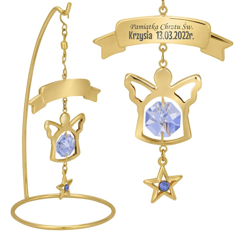 Pozłacana figurka Anioła z kryształkami – wyjątkowy prezent na Chrzest Święty