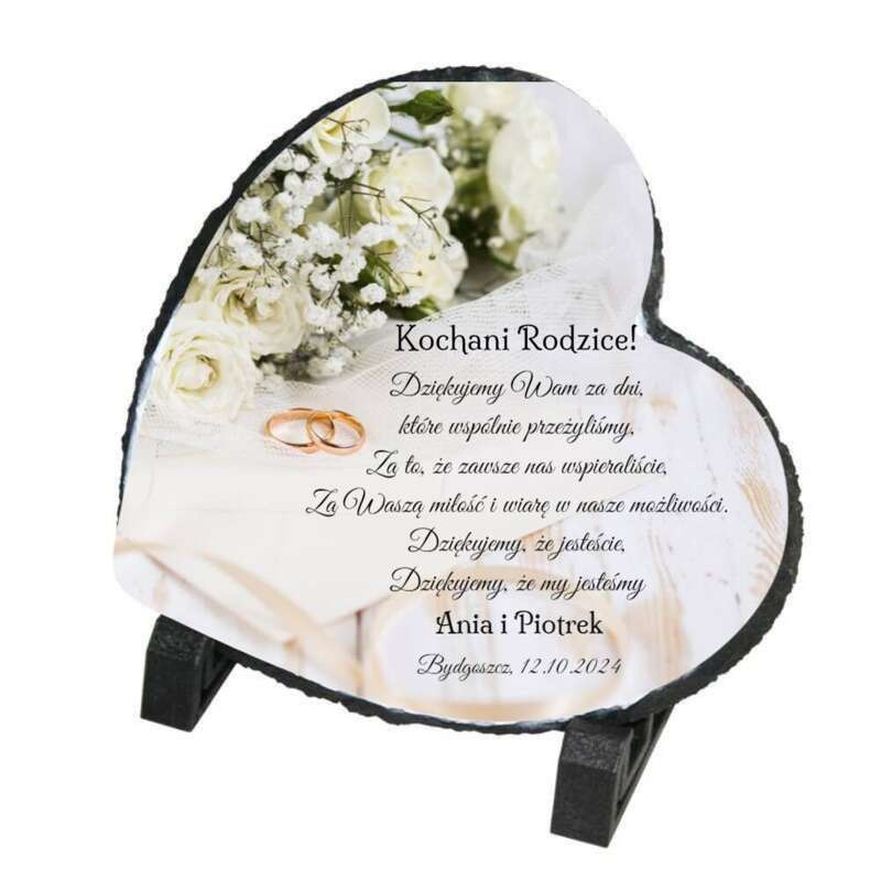Statuetka serce z fotogranitu – podziękowanie dla rodziców od Pary Młodej