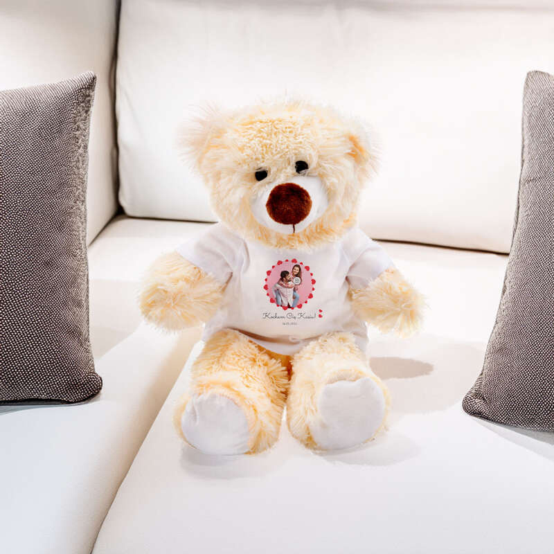 Miś pluszowy na walentynki ze zdjęciem na koszulce / Zdjęcia w sercach / Prezent dla niej i dla niego