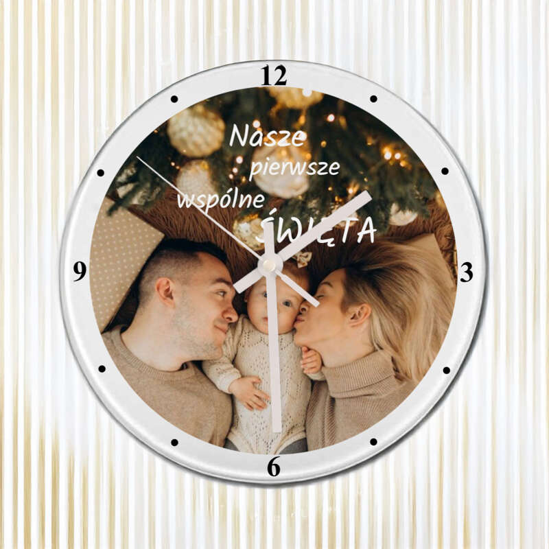 Zegar szklany okrągły z personalizacją UV na Święta ze zdjęciem