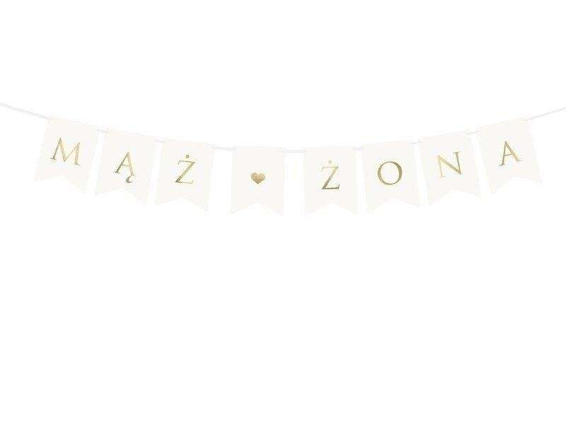 Baner Mąż Żona, na wesele, biały, 15 x 110 cm
