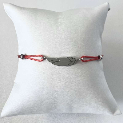 Stalowa bransoletka na czerwonym sznurku ze skrzydłem 316L
