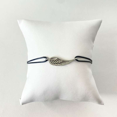 Stalowa bransoletka ze skrzydłem na czarnym sznurku, stal 316L