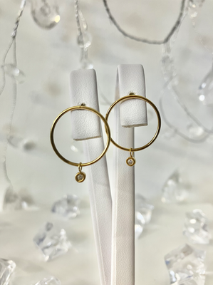 Złote kolczyki dla dziewczynki wysadzane białymi i różowymi cyrkoniami / Próba 585