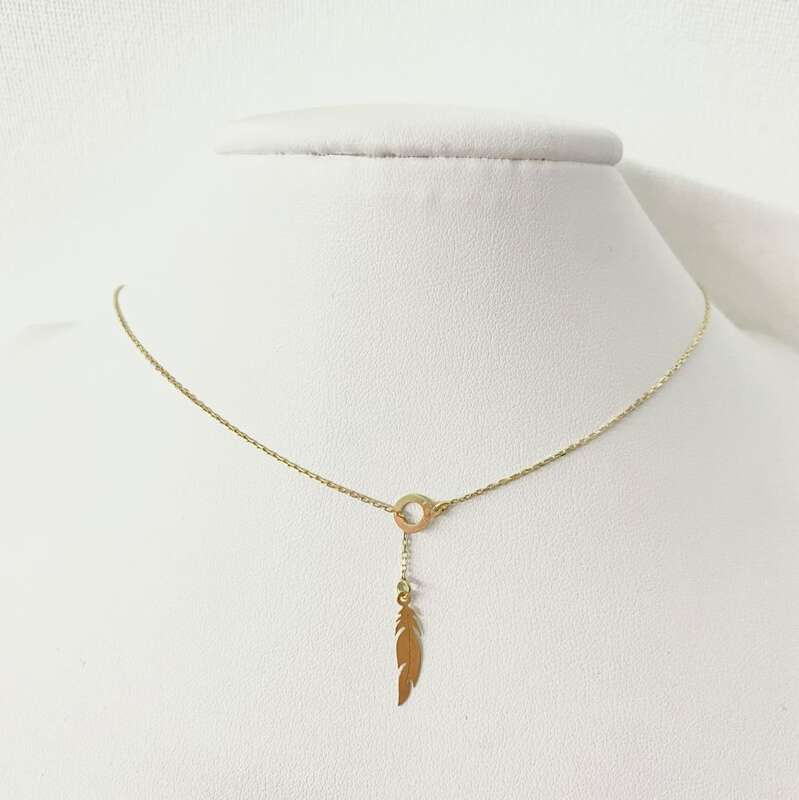 Złoty naszyjnik skrzydło z trzema kuleczkami z cyrkoniami / Próba 585