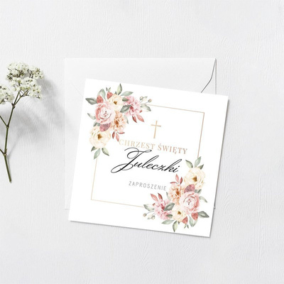 Zaproszenie na chrzest brzoskwiniowy ornament