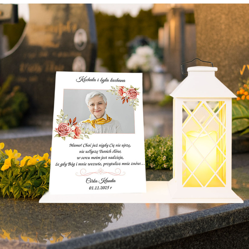 Zestaw nagrobny znicz lampion solarny LED tabliczka z personalizacją/Dla Mamy