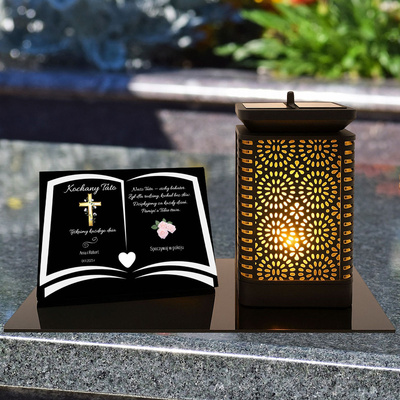 Stylowy zestaw nagrobny – znicz lampa solarna LED + tabliczka pamiątkowa z personalizacją