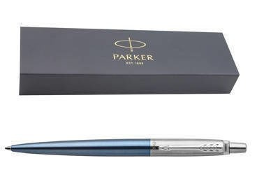 Parker Jotter to klasyczny kształt, ceniony na całym świecie za swoją jakość, trwałość i przystępną cenę. Długopis Parker Jotter posiada mechanizm sprężynowy przyciskowy i wyposażony jest w standardowy wkład koloru niebieskiego. Korpus, skuwka oraz przycisk wykonane są ze gładkiej stali nierdzewnej. Część dolna wykonana ze stali szlachetnej, szlifowana, pokryta czarnym lakierem. Klip z polerowanej stali nierdzewnej. Wkład umieszczony jest w długopisie.