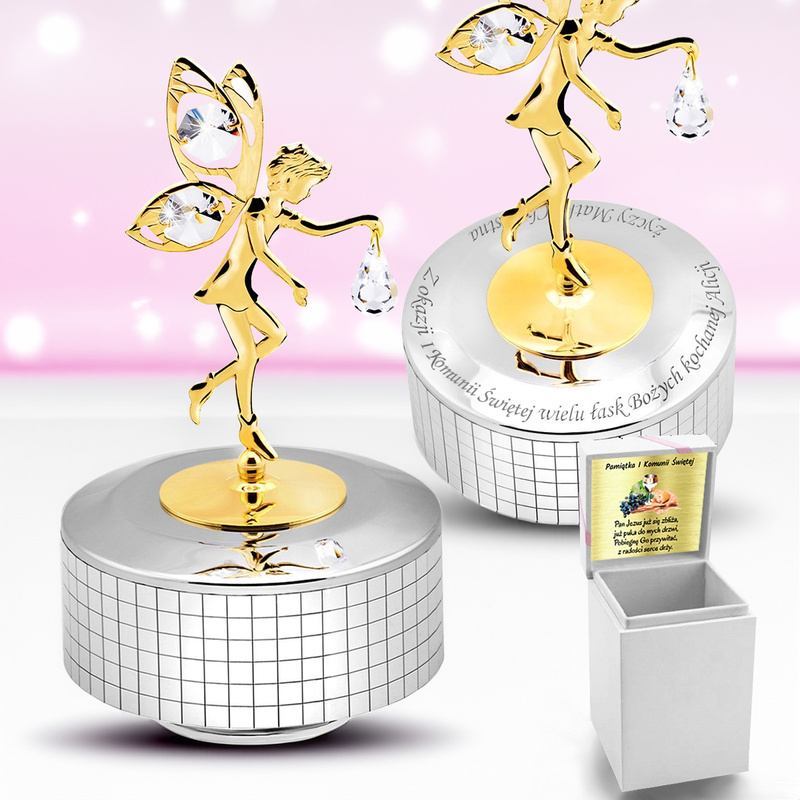 Pozytywka Elf z kryształami to wyjątkowy pomysł na prezent z okazji Chrztu, urodzin lub Dnia Dziecka. Jest to przedmiot pamiątkowy, ale też niezwykle dekoracyjny. Możliwość ozdobienia go indywidualnie zaprojektowanym grawerem powoduje, że staje się on unikatowy i jedyny w swoim rodzaju, a to czyni go perfekcyjnym wyborem na pamiątkę Chrztu Świętego.