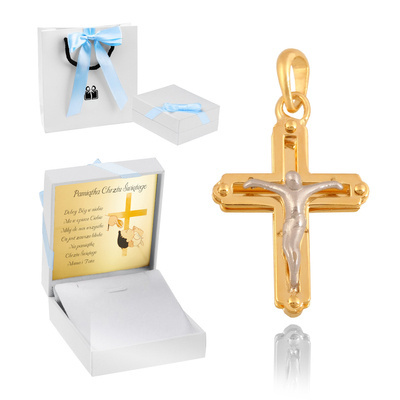 Proponujemy państwu wyjątkowy krzyżyk, który świetnie sprawdzi się na chrzest, komunię, czy bierzmowanie. Klasyczna forma krzyżyka z wizerunkiem Chrystusa, który został wykonany z białego złota sprawia, że zawieszka jest wyjątkową ozdobą, która wyróżni się na tle pozostałych. Krzyżyk został wykonany ze złota próby 585. Próba złota została potwierdzona cechą urzędu probierczego, dzięki czemu mają państwo pewność wysokiej jakości użytych do produkcji materiałów. Lakier ochronny, którym pokryty jest krzyż sprawia, że prezent na długo zachowa swój wyjątkowy blask.