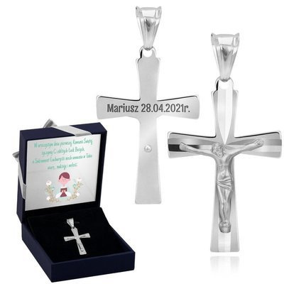 Krzyżyk srebrny pr.925 z Jezusem chrzest komunia bierzmowanie Grawer