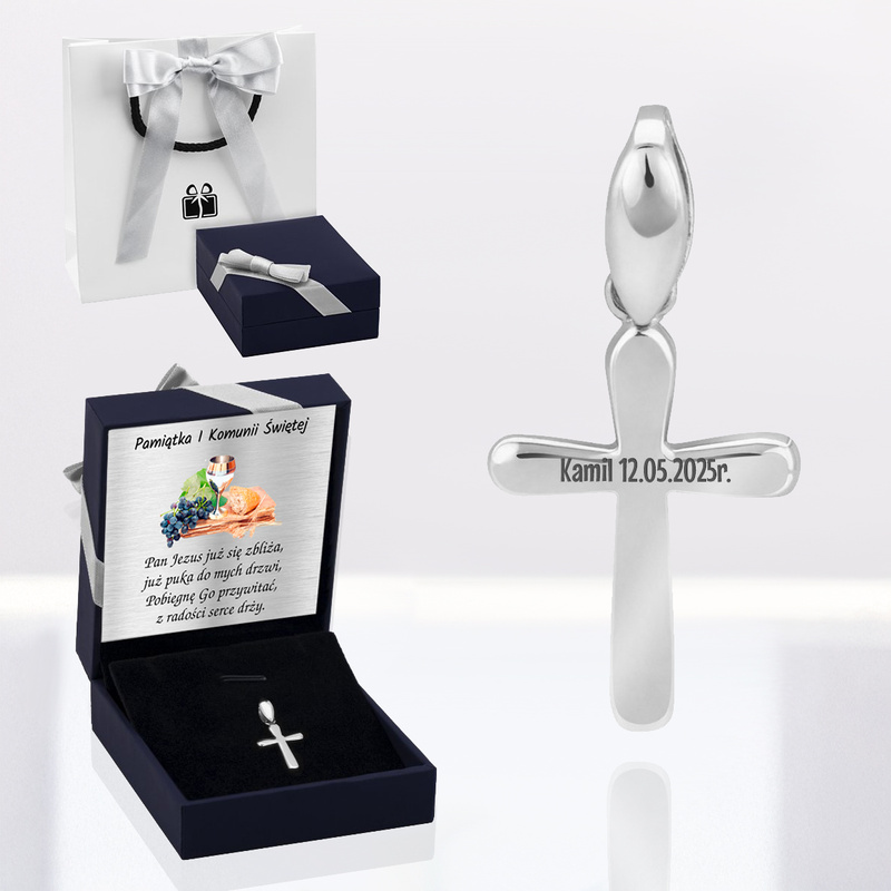 Krzyżyk Srebro pr. 925 Komunia Chrzest Grawer i Dedykacja