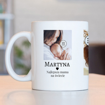 Na naszym kubku możesz podkreślić cechy Mamy, a także dodać zdjęcia wspominając jednocześnie piękne, wspólne chwile.