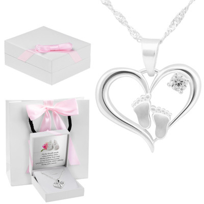 Proponujemy Państwu prześliczną zawieszkę z elementem dwóch stópek wbudowanych w serduszko. Produkt wykonany jest ze srebrna pr. 925.