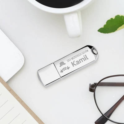 Elegancki chromowany pendrive 32 GB z indywidualnym grawerem jako prezent dla szefa.