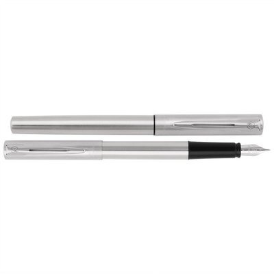 Pióro wieczne w całości wykonane z wysokiej jakości szczotkowanej stali. Wyposażone w stalówkę ze stali szlachetnej o cienkim rozmiarze (F). Przystosowane do nabojów atramentowych, może też być napełnianie wymiennym tłoczkiem.