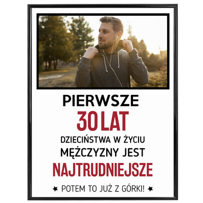 Plakat na 30 urodziny ze zdjęciem / Szalone wspomnienia / Prezent urodzinowy / 30x40 cm / szkło