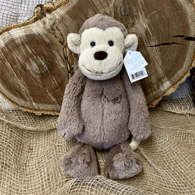Przytulanka marki Jellycat w kształcie małpki to produkt ręcznie wykonany. Ta urocza pluszowa małpka to idealna maskotka dla dzieci, zachęcająca do zabawy i przytulania. Wykonana z miękkiego, przyjemnego w dotyku materiału w odcieniach brązu i beżu, jest wyjątkowo przyjazna dla delikatnej skóry malucha. Ma duże, wyraziste oczy i szeroki uśmiech, co nadaje jej ciepły i przyjazny wygląd. Długie, ruchome łapki oraz puszysty ogonek sprawiają, że małpka wygląda bardzo naturalnie i z pewnością przypadnie do gustu dzieciom. To doskonały towarzysz do zabawy i zasypiania, a także świetny pomysł na prezent, który wywoła uśmiech na twarzy każdego dziecka.