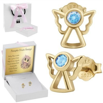 Pozłacane kolczyki aniołki z niebieską cyrkonią pr. 925Cena: 44,00 zł / szt.