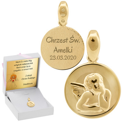 Pozłacany Medalik Aniołek pr. 925 na chrzest komunię GrawerCena: 75,00 zł / szt.Produkt niedostępny.