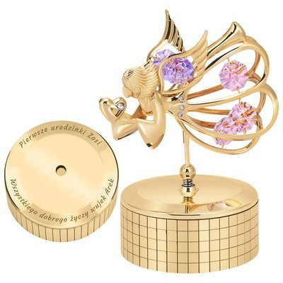 Prześliczna posrebrzana pozytywka w kształcie aniołka, ozdobiona austriackimi kryształami wraz z grawerunkiem.