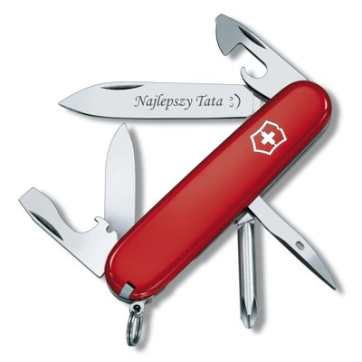 Proponujemy Państwu scyzoryk wielofunkcyjny Victorinox Tinker z indywidualnym grawerunkiem na ostrzu. Idealny kompan na wycieczki, czy do codziennego użytku. Dzięki kompaktowym rozmiarom zmieści się w kieszeni spodni towarzysząc nam i pomagając w różnych zadaniach. Świetny prezent dla naszych bliskich. Proponowany przez nas grawerunek na pewno zwiększy emocje obdarowanej osoby oraz unikalność prezentu.
